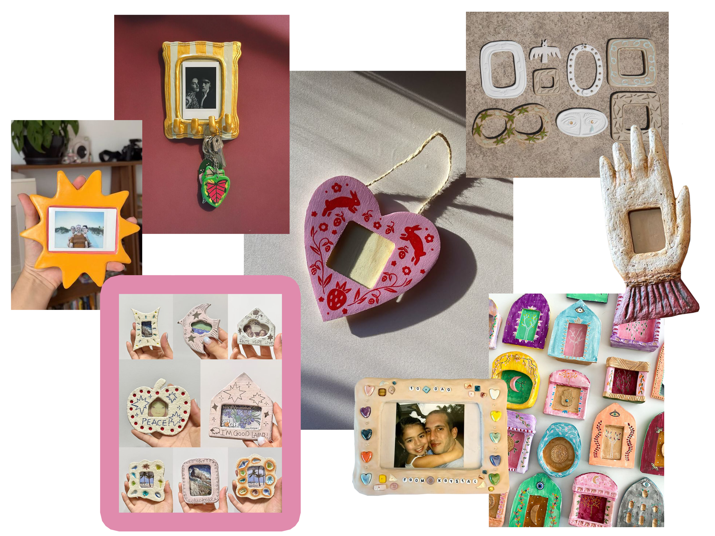 Many great designers and artists have tried their hand at ceramic mirrors. On the left is a Fornasetti ceramic frame that’s currently being sold, the frame in the center is by artist Rene Buthaud, and the one on the right is by French artist Mithe Espelt.